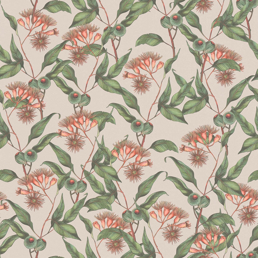 Tapetes ar tropu ziediem un lapām: bēša, rozā, zaļa, 1402076
