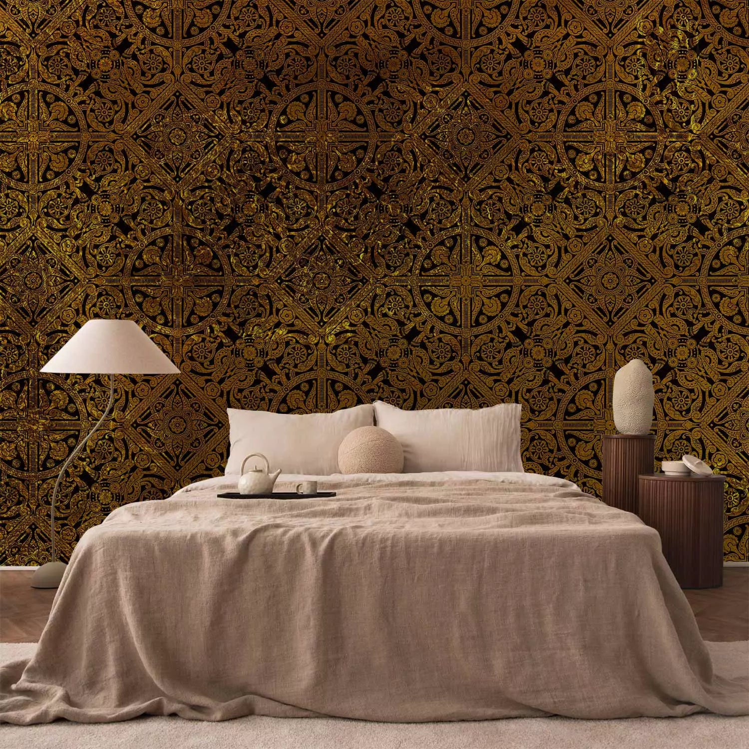 Fototapetes ar ķeltu ornamentu, zeltā krāsā - 91380