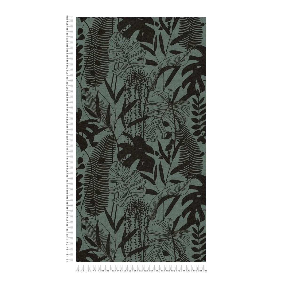 Mysterious and rich wallpaper with a deep color palette. It is easy to clean and resistant to wear and tear. The pattern repeat is 53 cm. Dark green and black colors create a "midnight garden" effect. The slightly glossy surface and relief highlight the contours of the leaves, preventing the wall from looking flat or gloomy. They create a cozy, intimate, and very elegant atmosphere.
