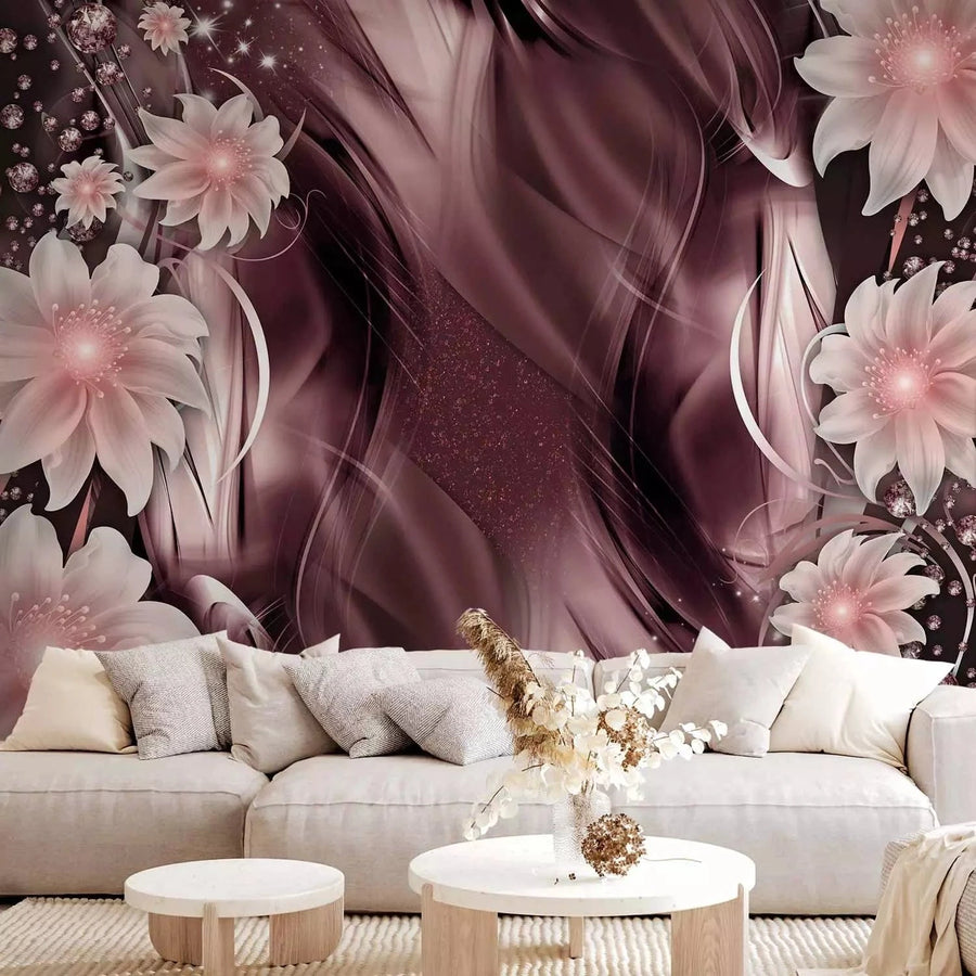 Fototapetes ar ziediem - Ziedi uz abstrakta violeta fona - 64305 G-ART
