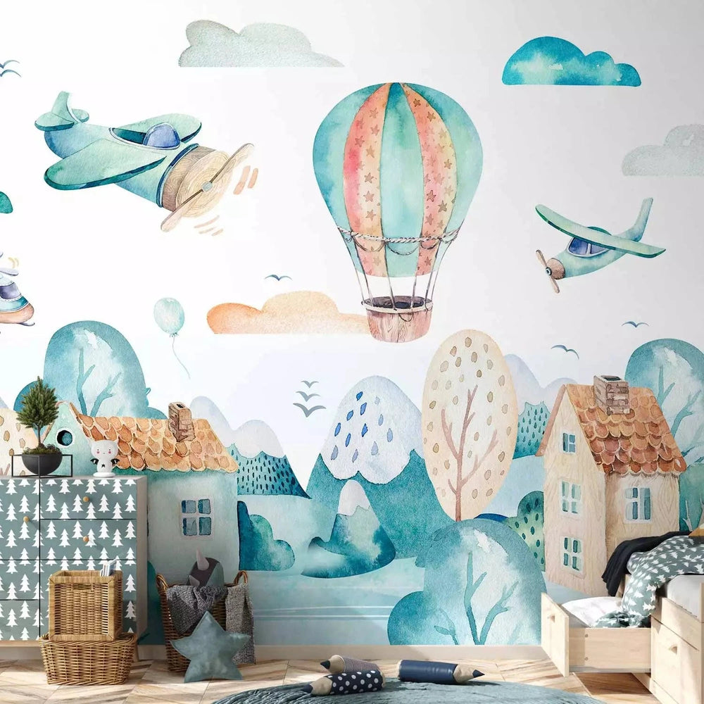 Wall Murals for children's room - City of Planes (blue shades) - 142732