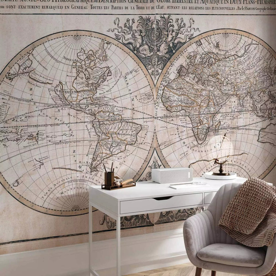 Fototapetes Vecā pasaules karte bēšā krāsā, vintāžas - 106586 G-ART