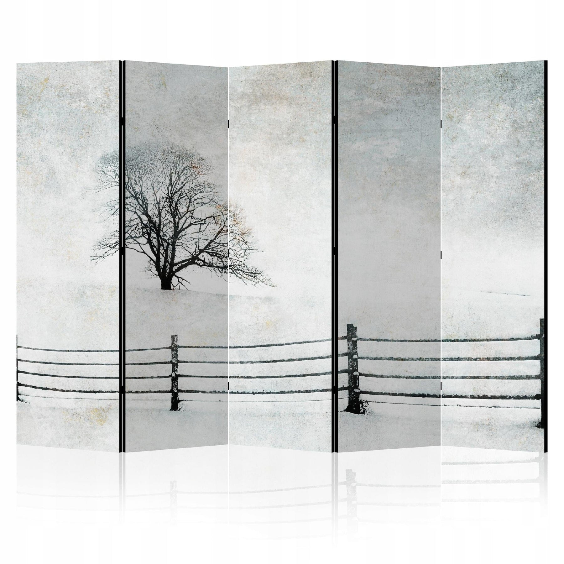 Black-and-white room divider, single-sided, 225x172, Winter silence in the countryside