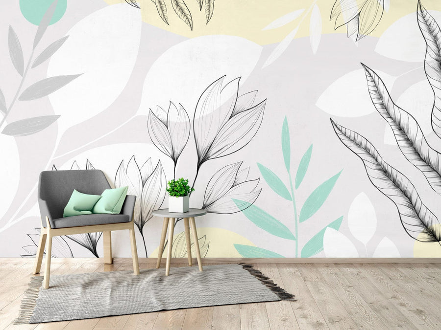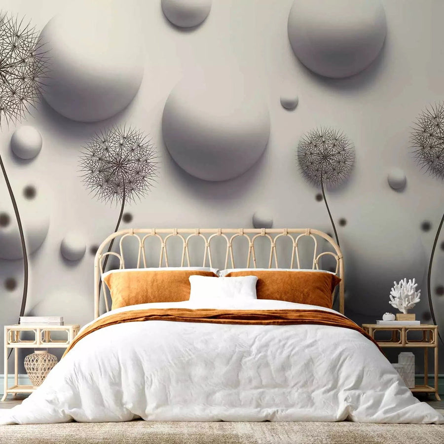 3D Wall Murals - Abstraction with floral motif in gray, 137891
