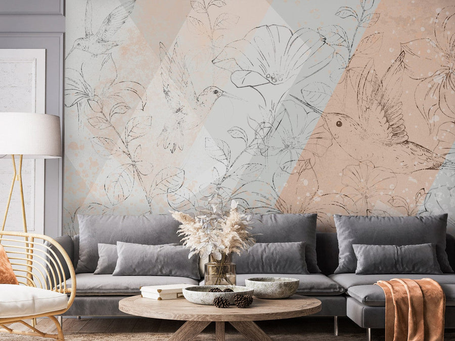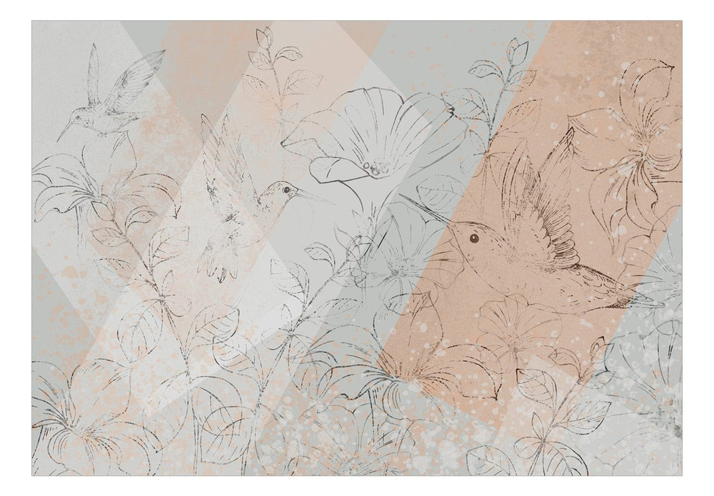 Fototapetes ar kolibri - Kolibri pļavā (bēšos un pēlēkos toņos) G-ART