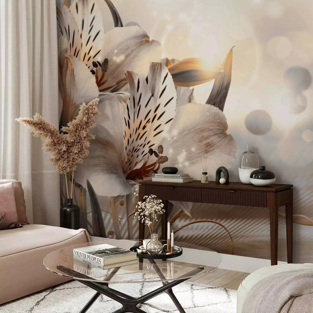 Romantiskas fototapetes ar lilijam šampaņa krāsā - premium klasse G-ART
