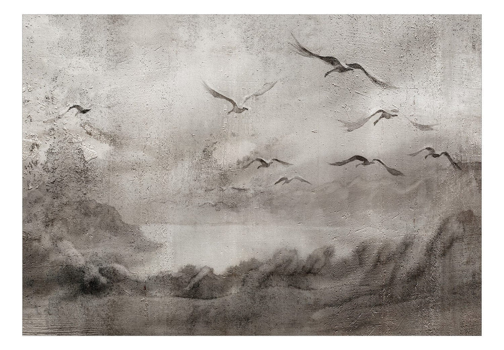 Fototapetes ar putniem - Gulbis lidojumā, pelēkā krāsā, 142882 G-ART