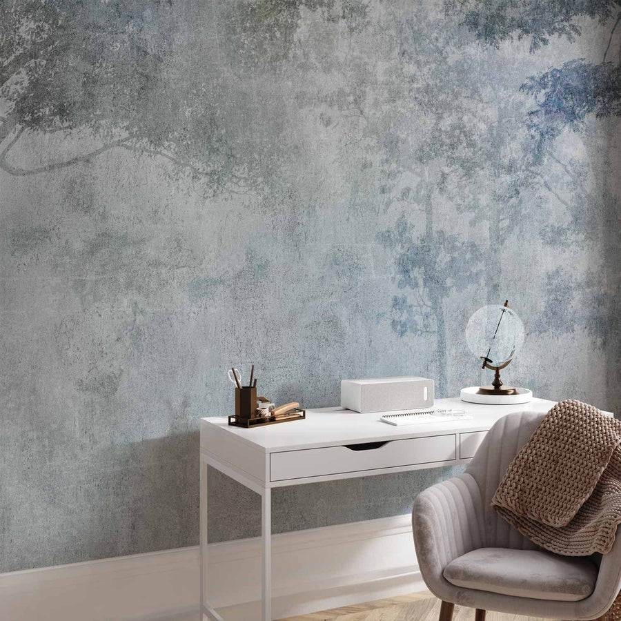 Wall Murals - trees in the fog - landscape in blue and gray, 131901