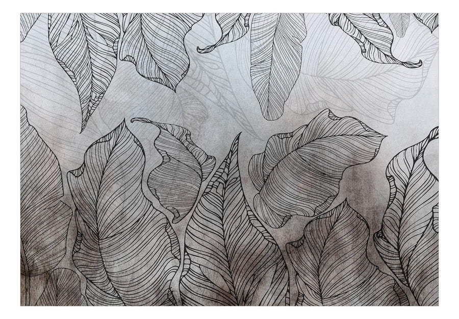 Fototapetes ar lapām - Lapu kontūras uz pelēkā fona, 148924 G-ART
