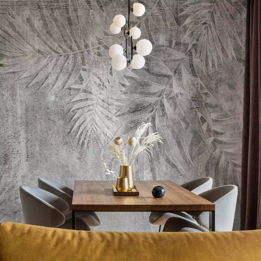 Fototapetes ar stilizētām tropu lapām, betona faktūra, 137856 G-ART