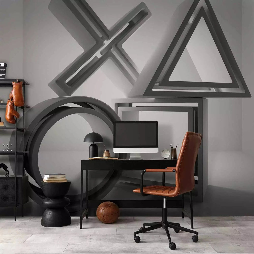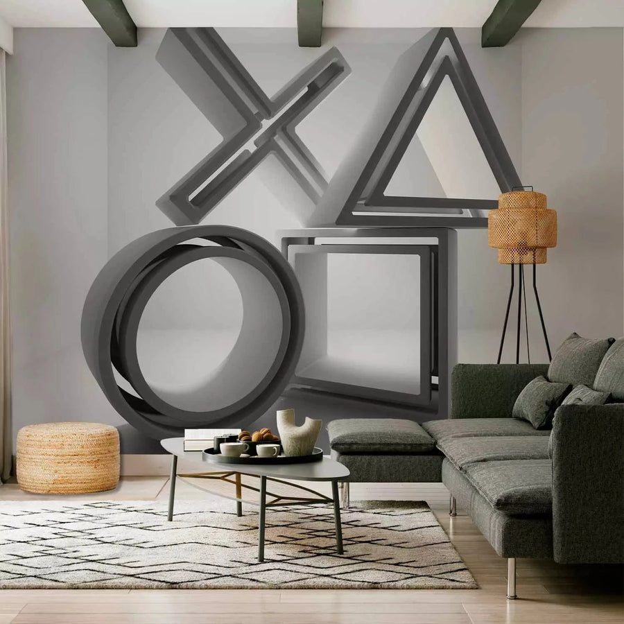 Wall Murals - Grey symbols from computer games - three-dimensional abstraction - 136380
