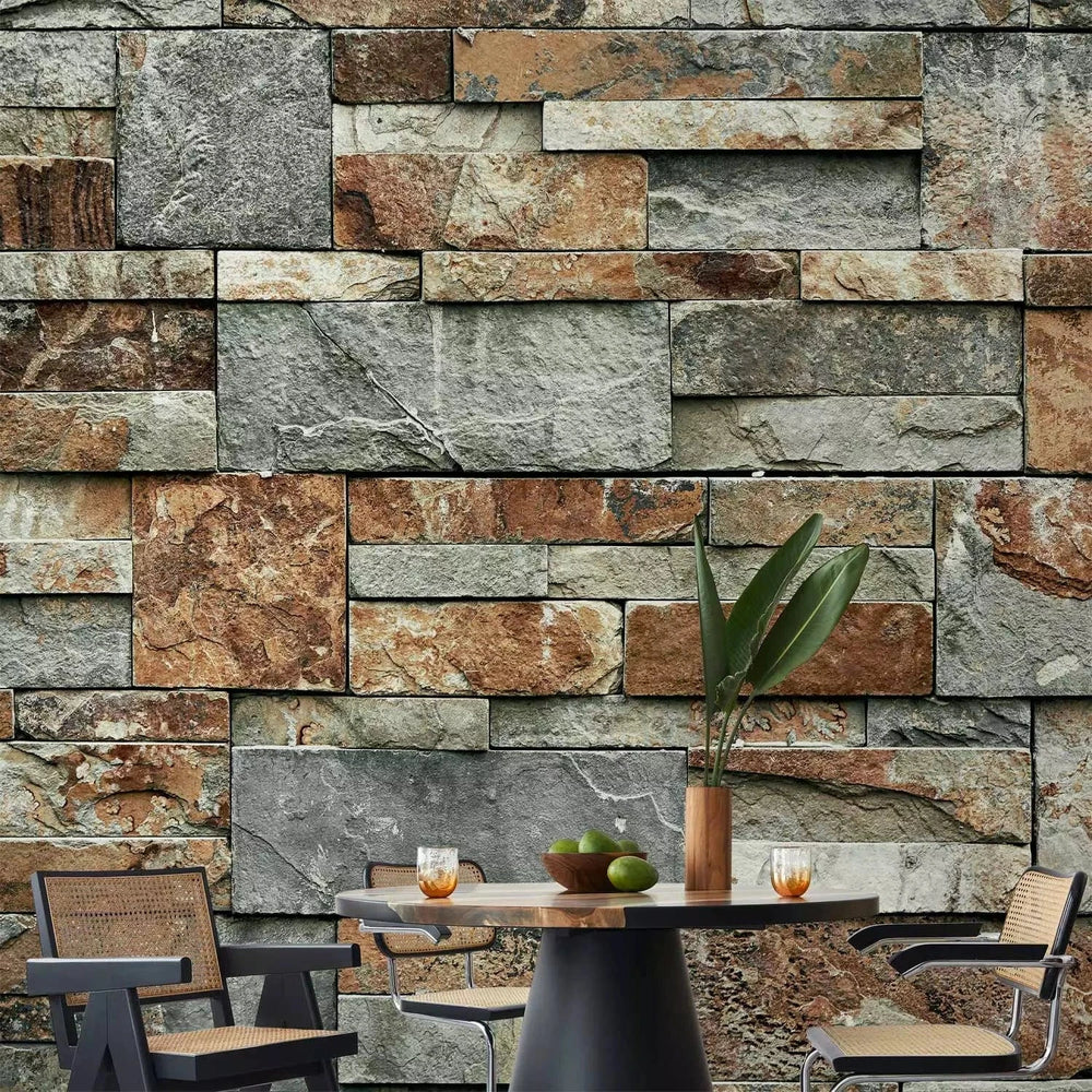 Fototapetes - siena ar akmeņiem dažādās formās un krāsās G-ART