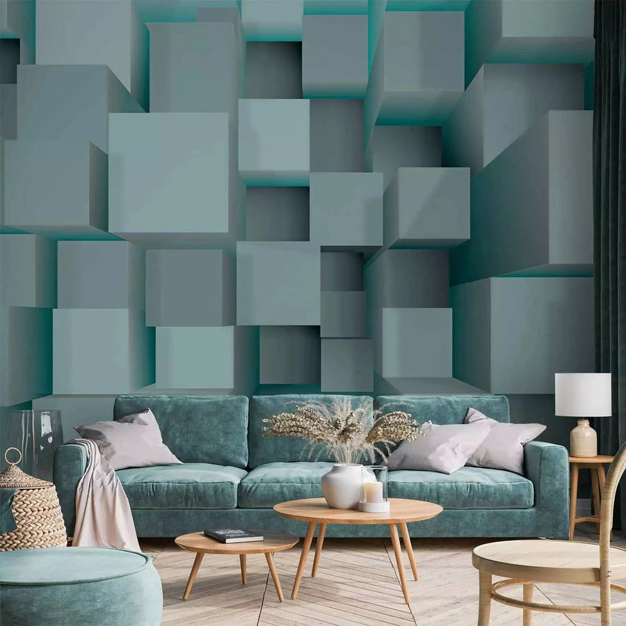 3D Wall Murals - blue geometric shapes with illusion effect, 97063