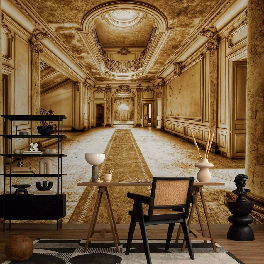 Wall Murals with a hall and marble floor in brown shades, 60202