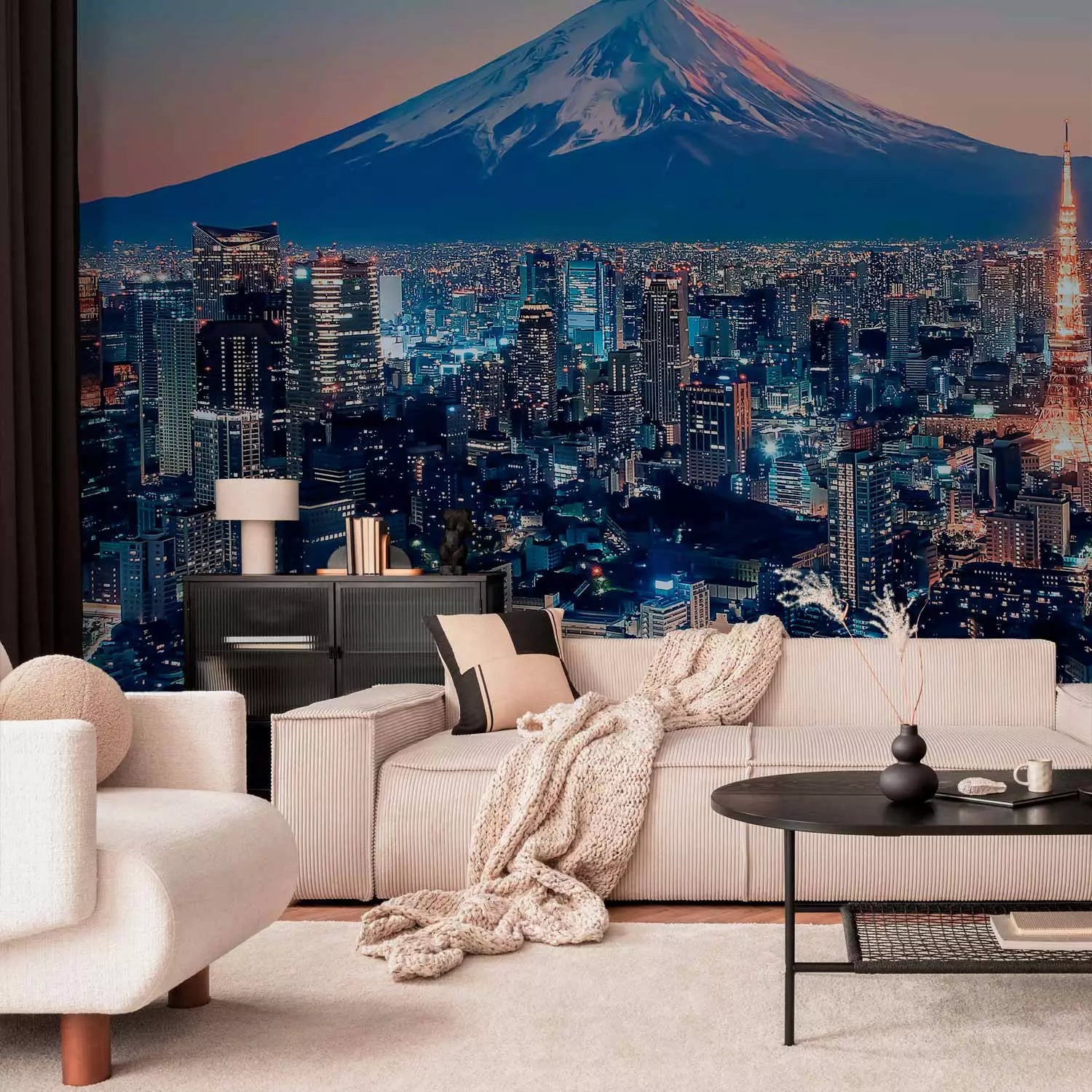 Wall Murals - Tokyo at sunset - Lighted skyscrapers on the background of Fudzi, 150884