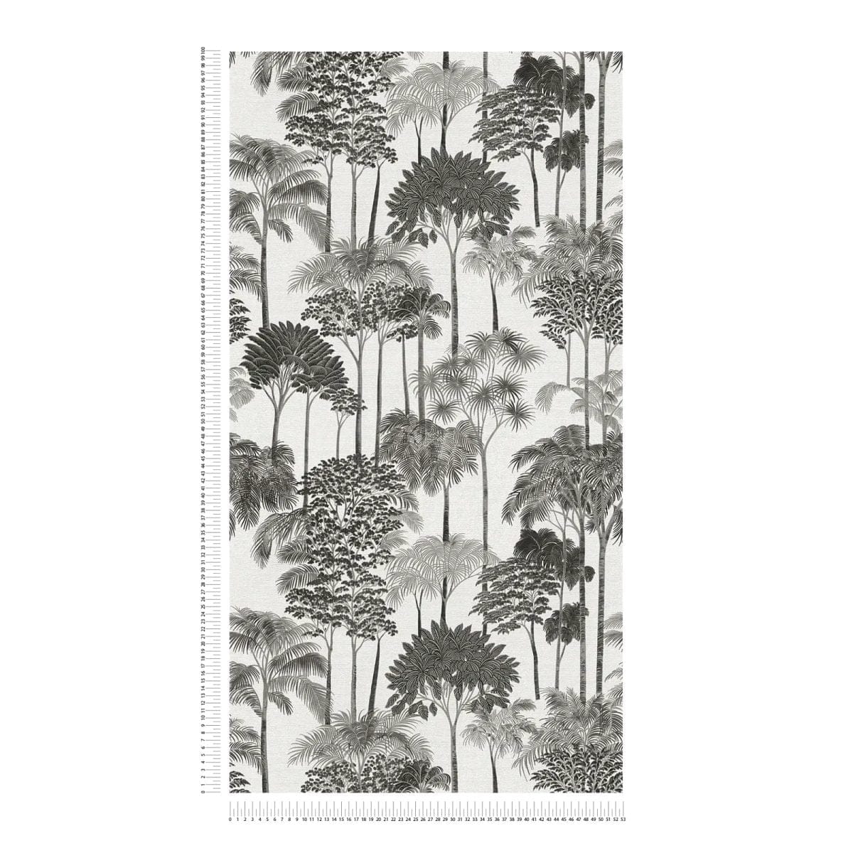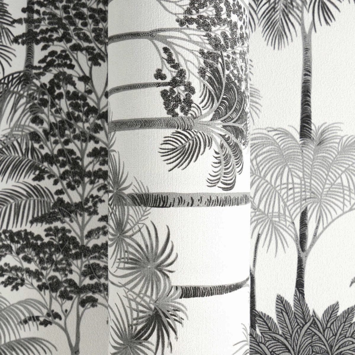 Stylish non-woven wallpaper with a sophisticated, slightly glossy surface that adds luxury to the design. They are easy to clean and durable. The pattern repeat (64 cm) ensures a continuous and flowing landscape. The black and white color scheme makes the tropical motif a modern classic – it is graphic, clean, and very effective. The gloss effect adds vitality to the monochrome pattern, making it ideal for Art Deco or modern interiors.