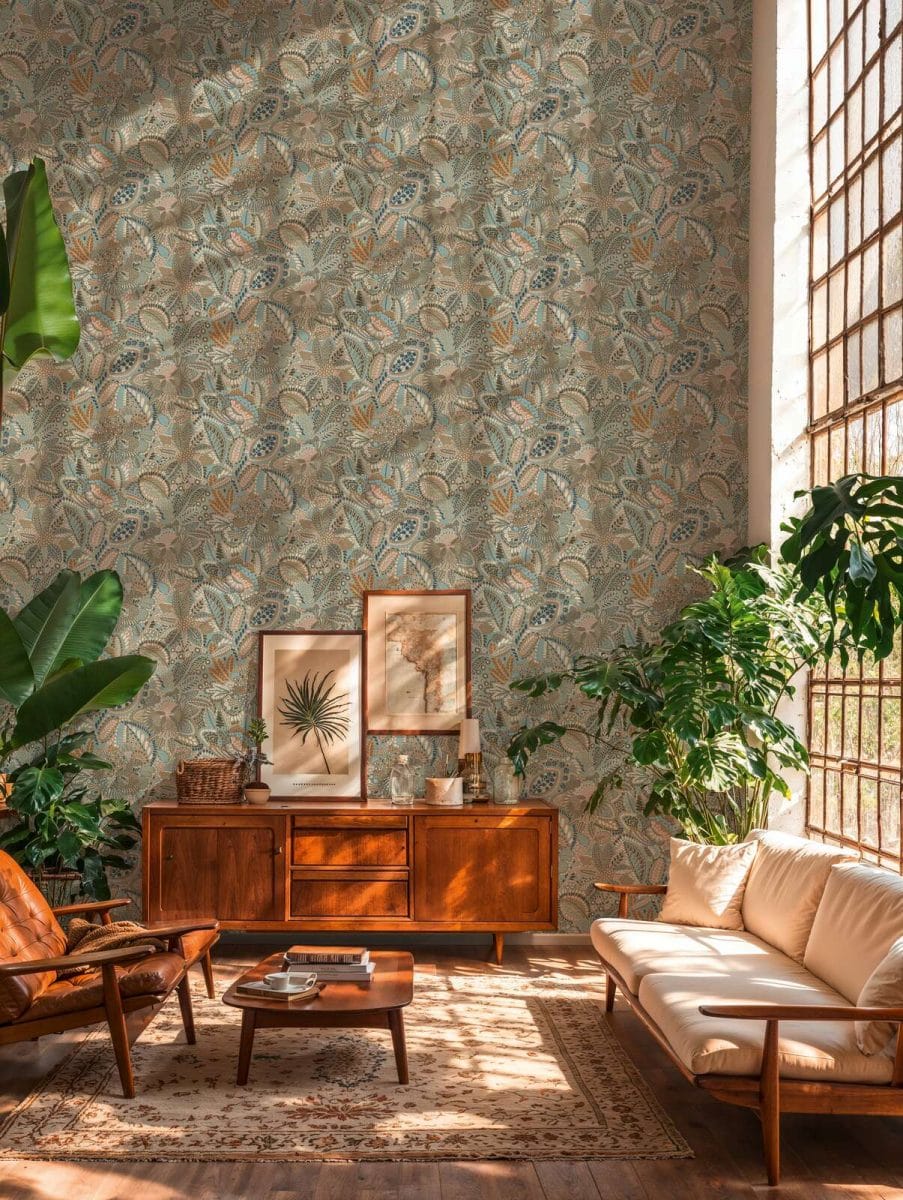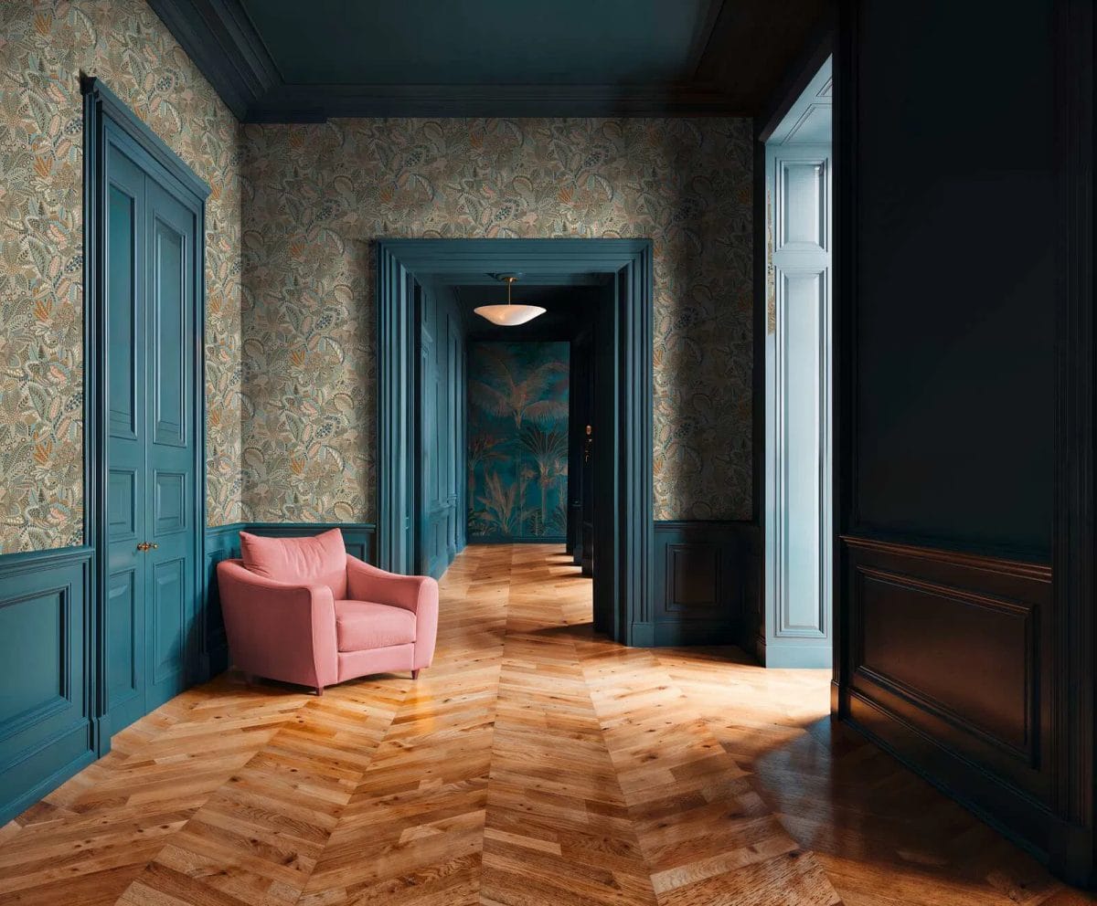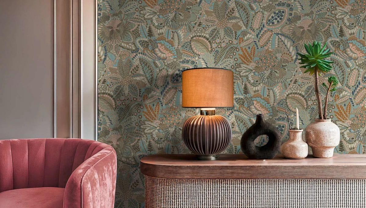 Lively yet elegant wallpaper with a matte finish. It is easy to maintain and durable. To achieve the perfect floral composition, the pattern (64 cm) must be coordinated. The interplay of blue, gray, and pink tones creates a delicate and artistic effect. This wallpaper gives the room a romantic and light feel without being too childish. It is perfect for refreshing a dining room, children's room or creative space.
