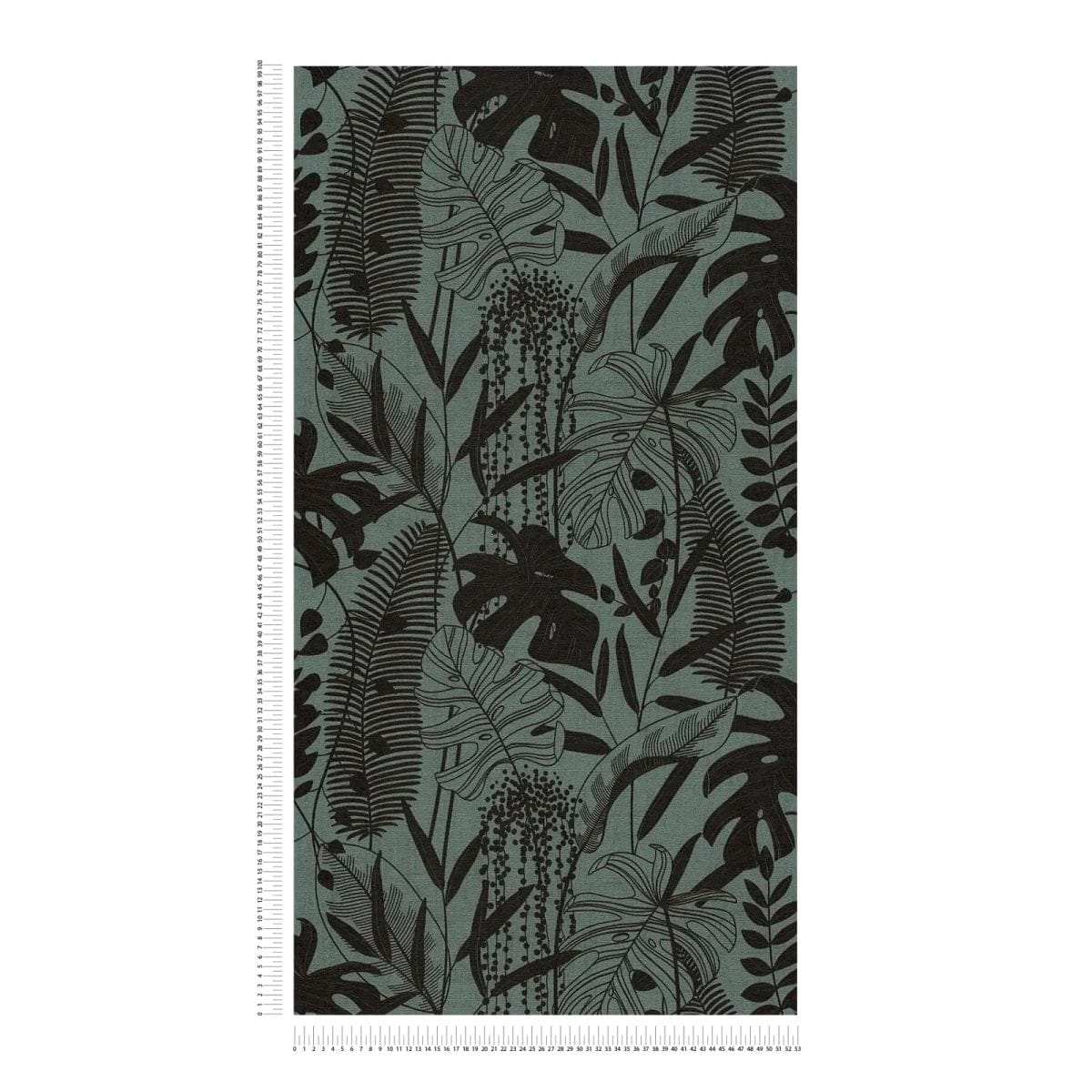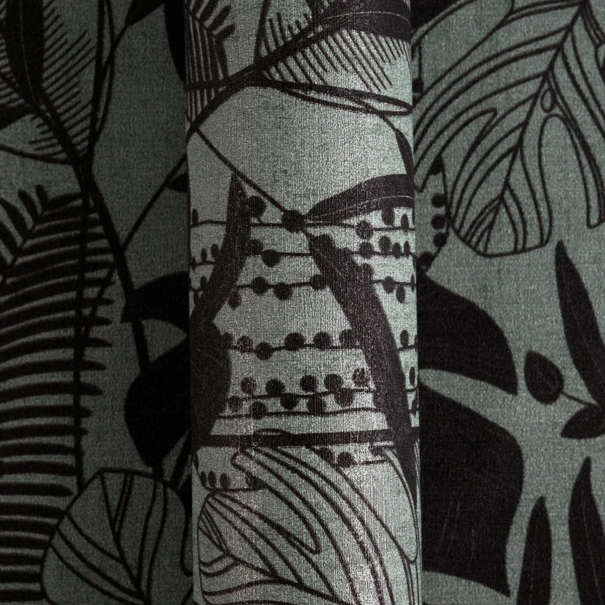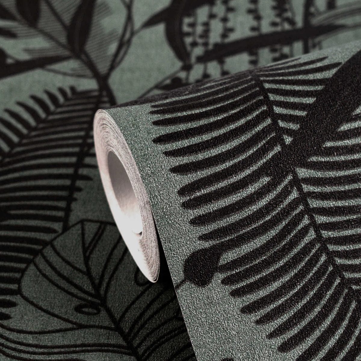 Mysterious and rich wallpaper with a deep color palette. It is easy to clean and resistant to wear and tear. The pattern repeat is 53 cm. Dark green and black colors create a "midnight garden" effect. The slightly glossy surface and relief highlight the contours of the leaves, preventing the wall from looking flat or gloomy. They create a cozy, intimate, and very elegant atmosphere.