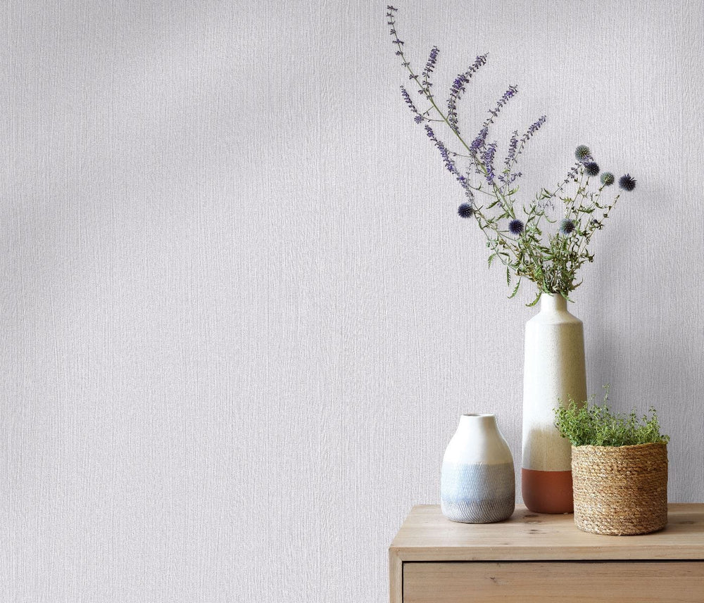 Vienkkrāsainas tapetes ar auduma faktūru - balta, pelēka krāsā 375211 AS Creation