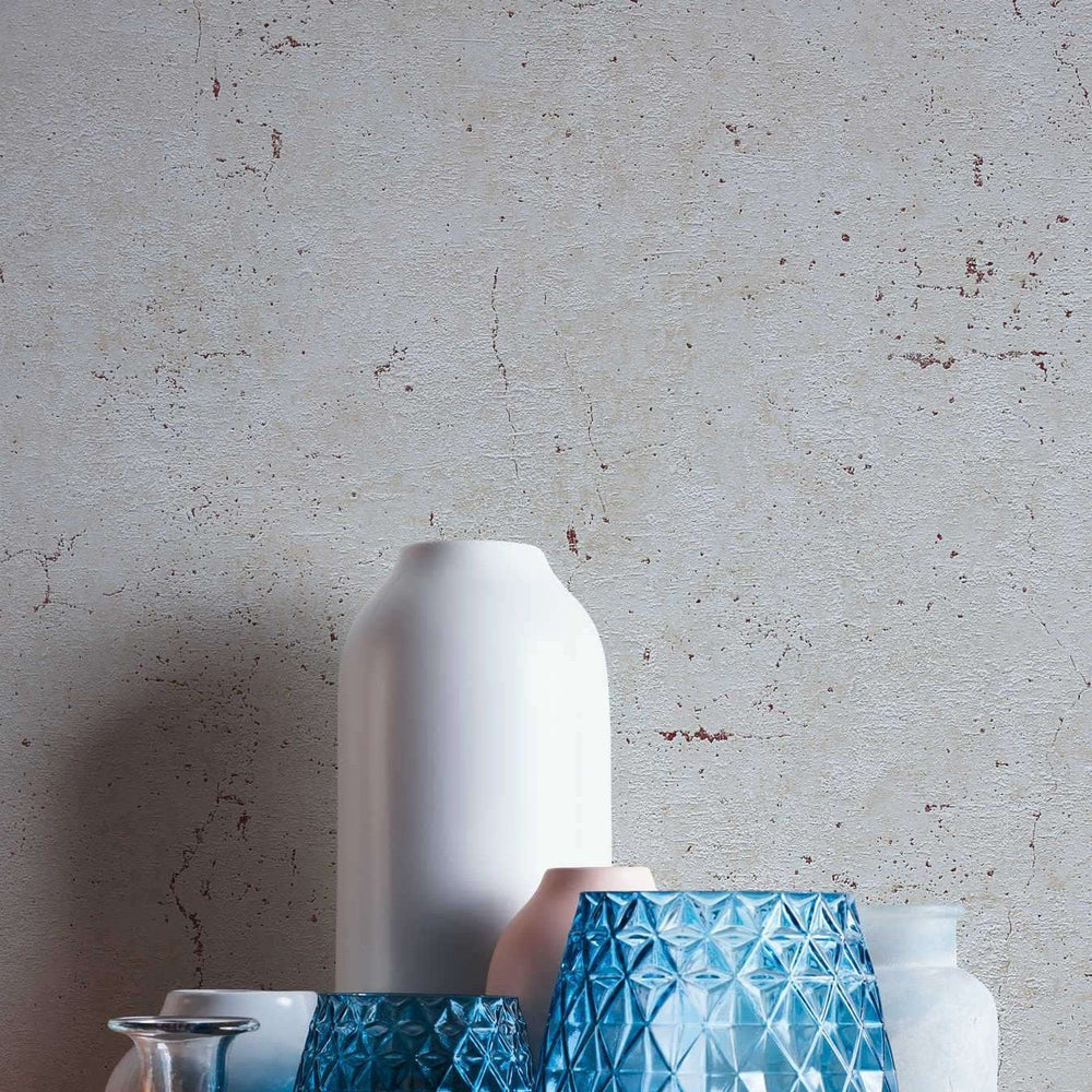 Vienkrāsainas tapete ar dekoratīva apmetuma rakstu, bēšas, 377451 AS Creation
