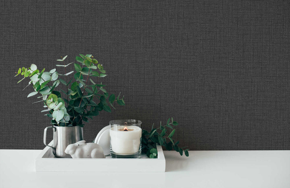 Vienkrāsainas tapetes melnā krāsā ar struktūrētu reljefu, 116093 AS Creation