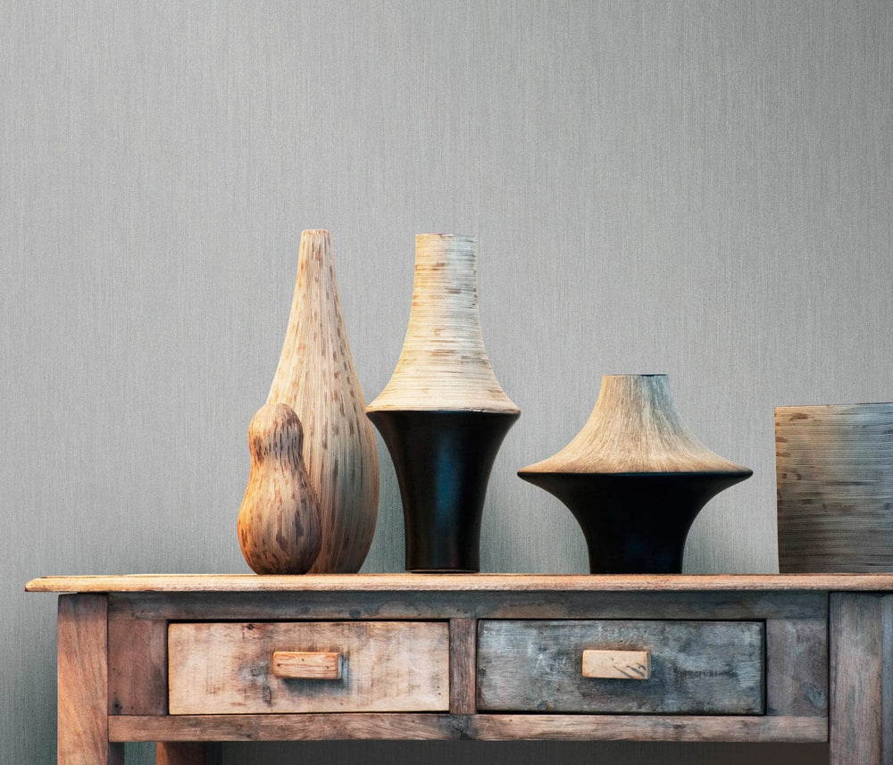 Pelēkbrūnas tapetes ar metālisku spīdumu un struktūras reljefu 381976  Tapetenshop.lv