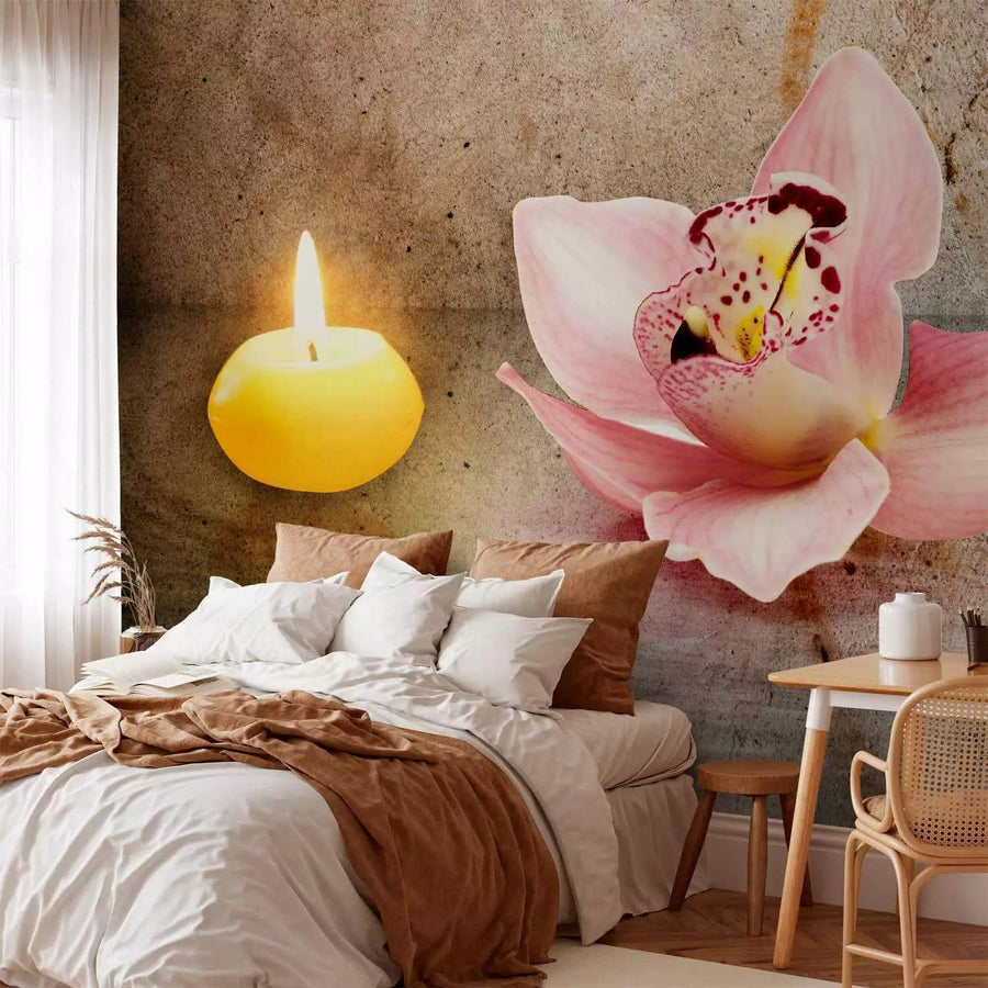 Skaistas fototapetes ar rozā orhidejām un brūnu fonu, 60215 - pirkt G-ART