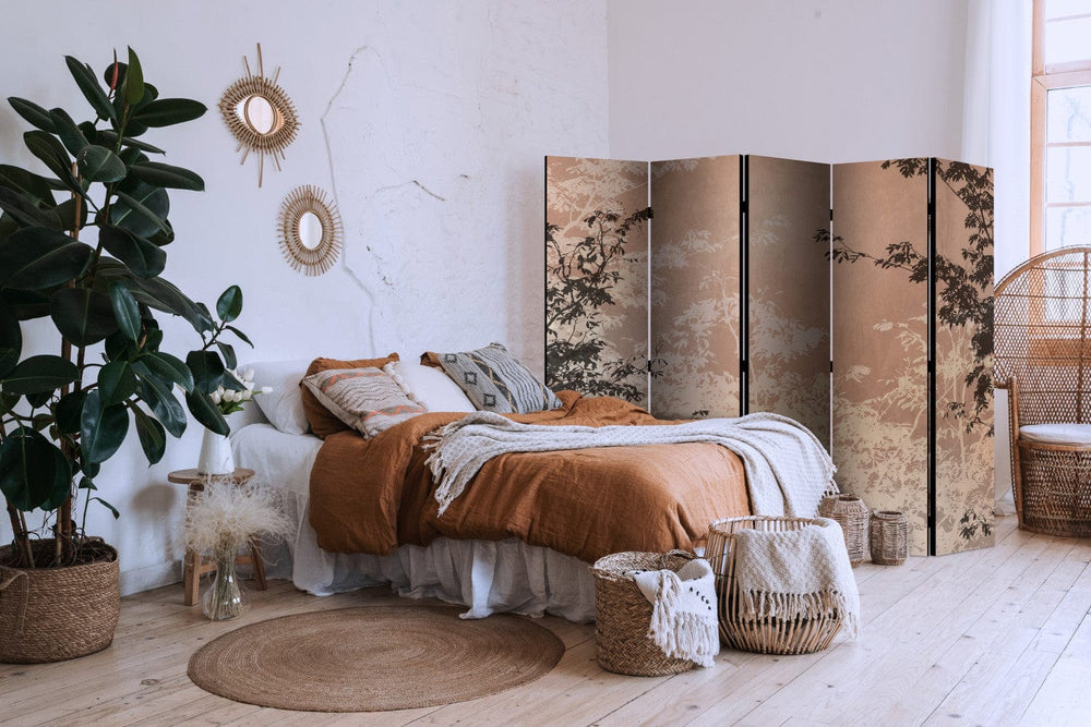 Room divider - Light and dark brown tree branches on a brown background, 150872, 225x172 cm