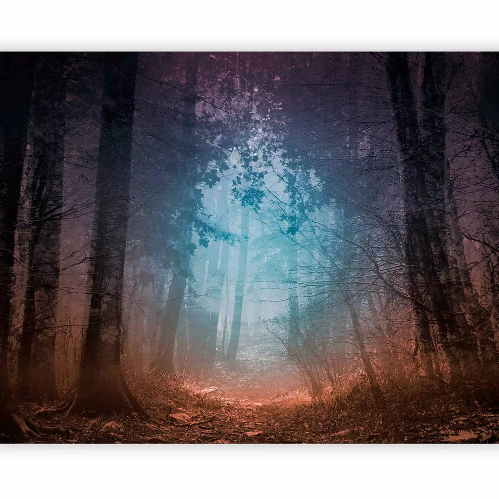 Meža ainava - noslēpumains mežs ar kokiem un lapām - tumšos toņos G-ART