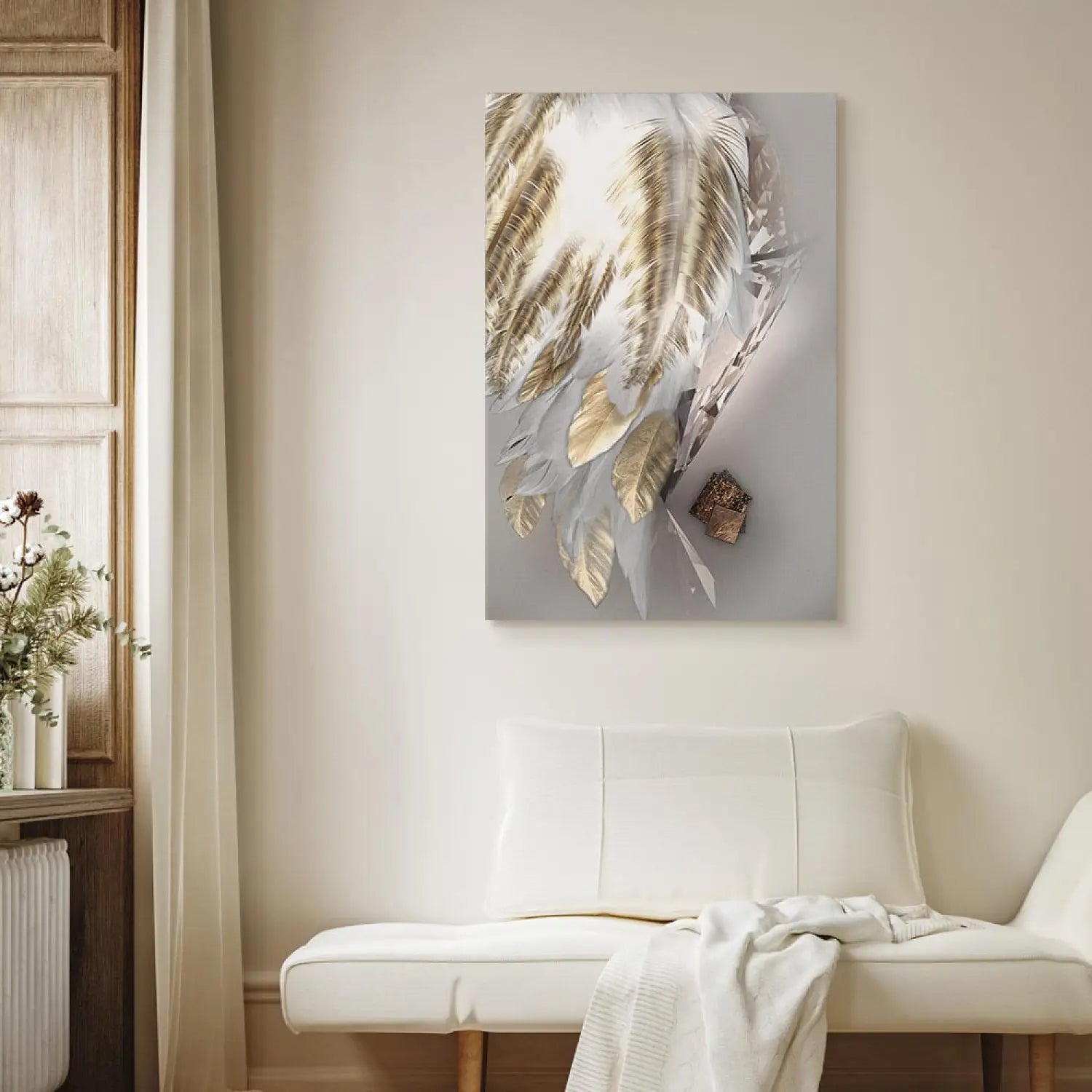 Canvas with gold feathers on a gray background - Fallen Angel, (x 1), 127797