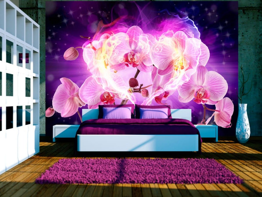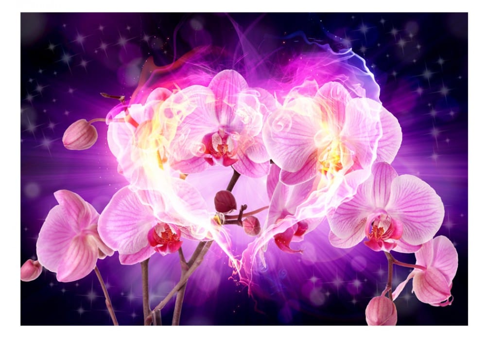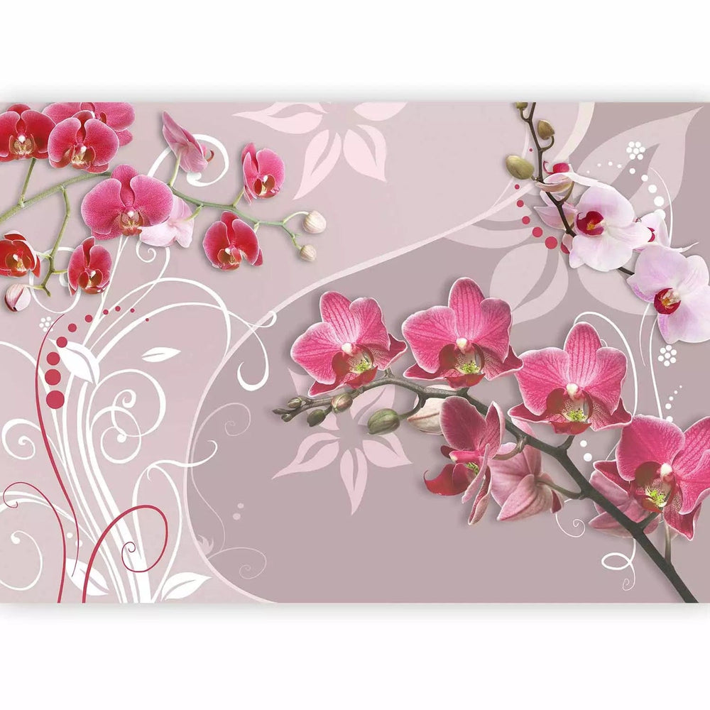 Fototapetes ar rozā orhidejām un rozā ornamentiem,  60300  G-ART