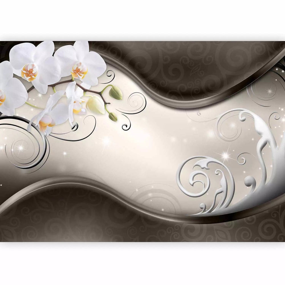 Fototapetes viesistabai brūnā un bešā krāsā ar balto orhideju G-ART