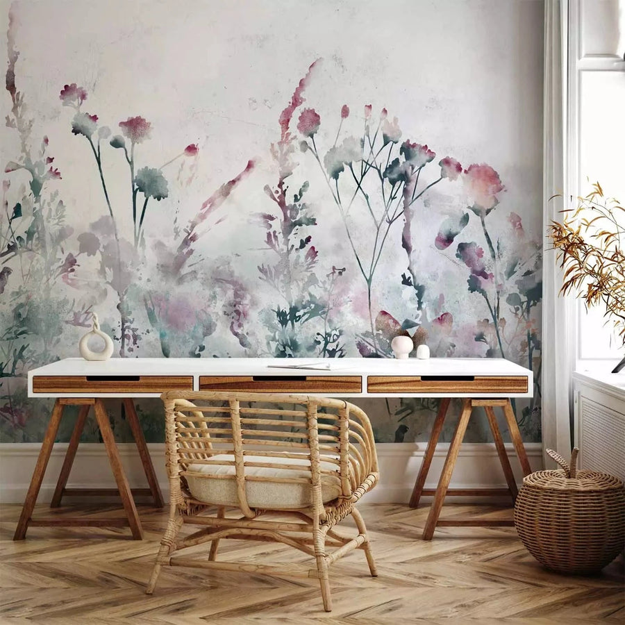 Wall Murals - Watercolour meadow in pink shades - 134453