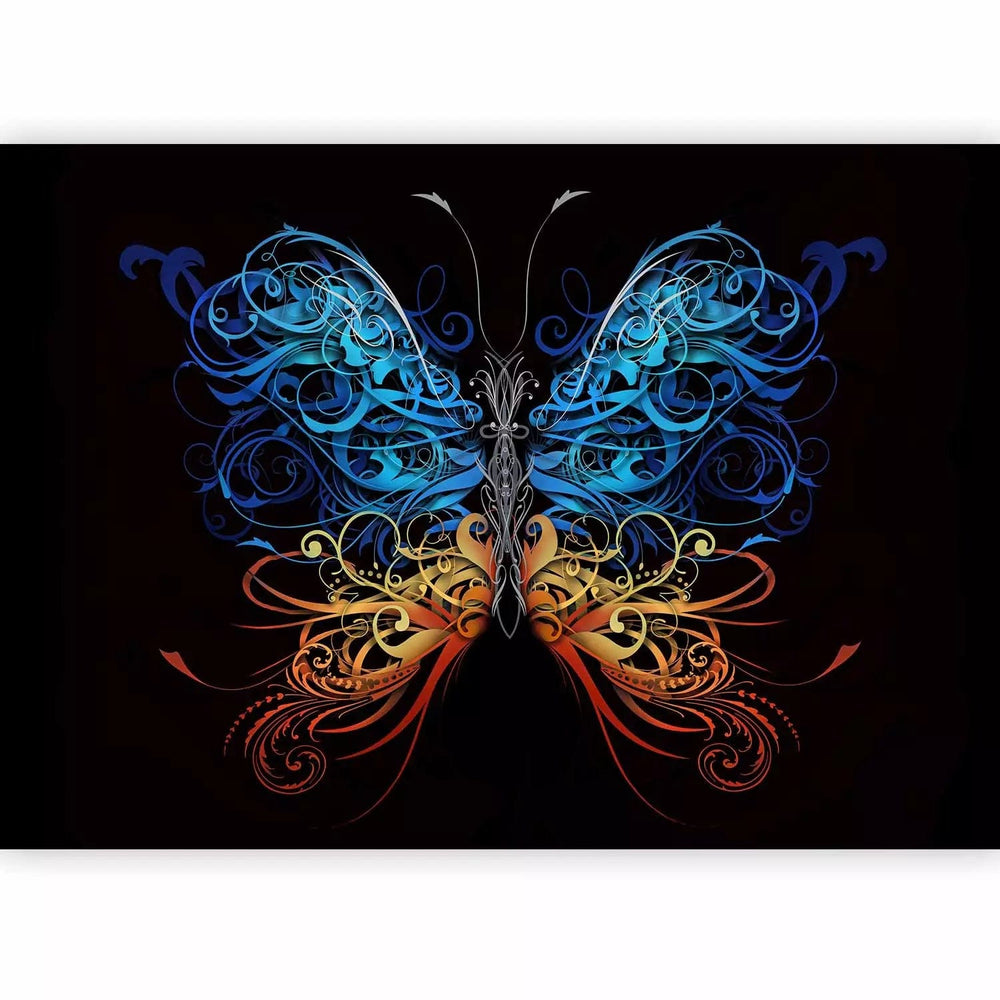 Fototapetes - krāsains tauriņš ar ornamentētiem spārniem uz melna fona G-ART