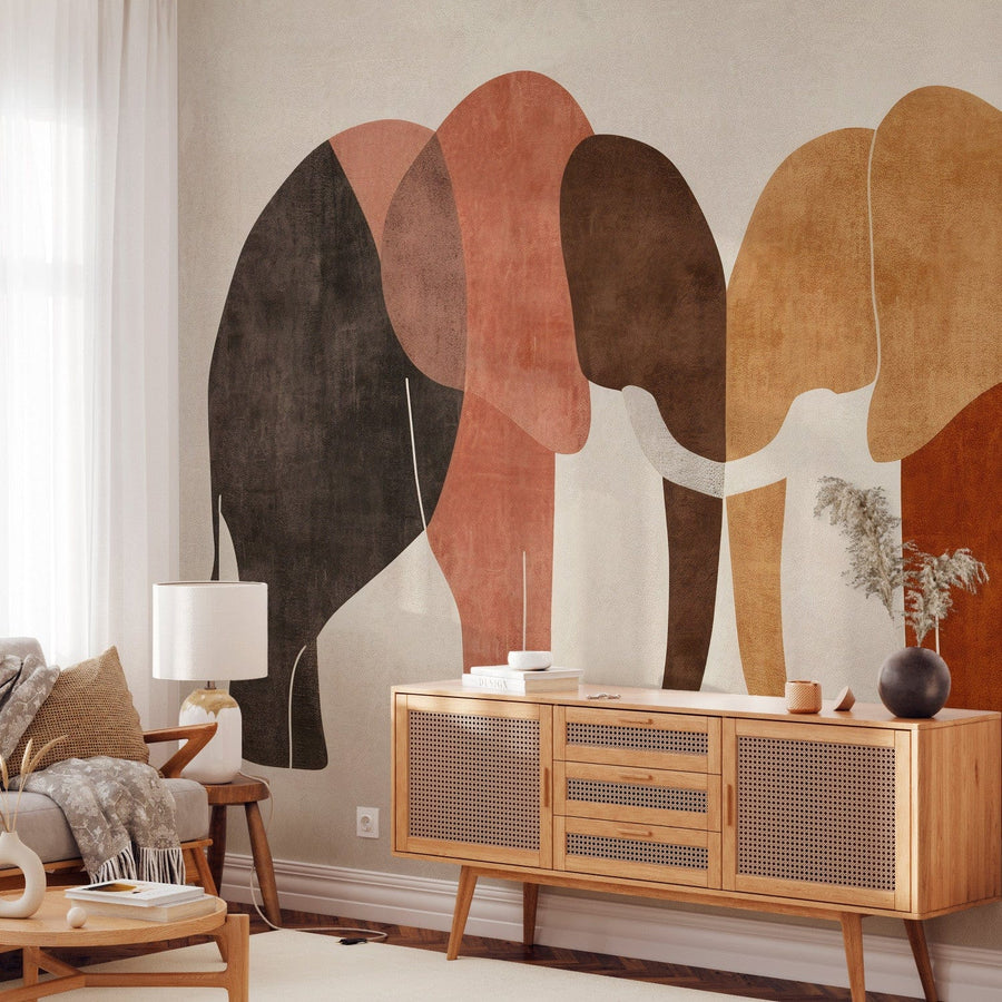 Wall Murals - Geometric elephants - composition in terracotta colors, 159461