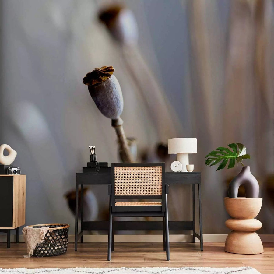 Fototapetes ar magones galviņām uz pelēka fona, 60397 G-ART