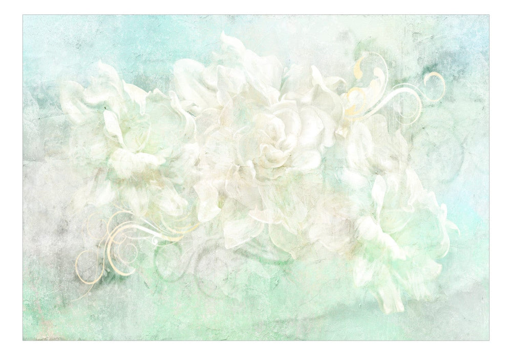 Fototapetes ar vintāžas fonu - Ziedēšana pasteļtoņos, zilā, zaļā G-ART