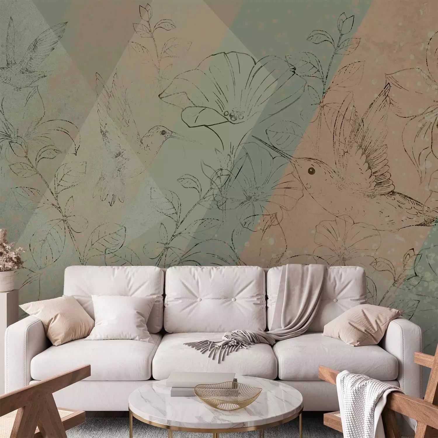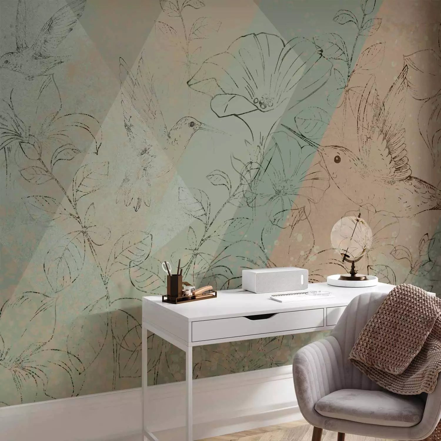 Wall murals with hummingbirds - Hummingbirds in a meadow (green tones), 146340