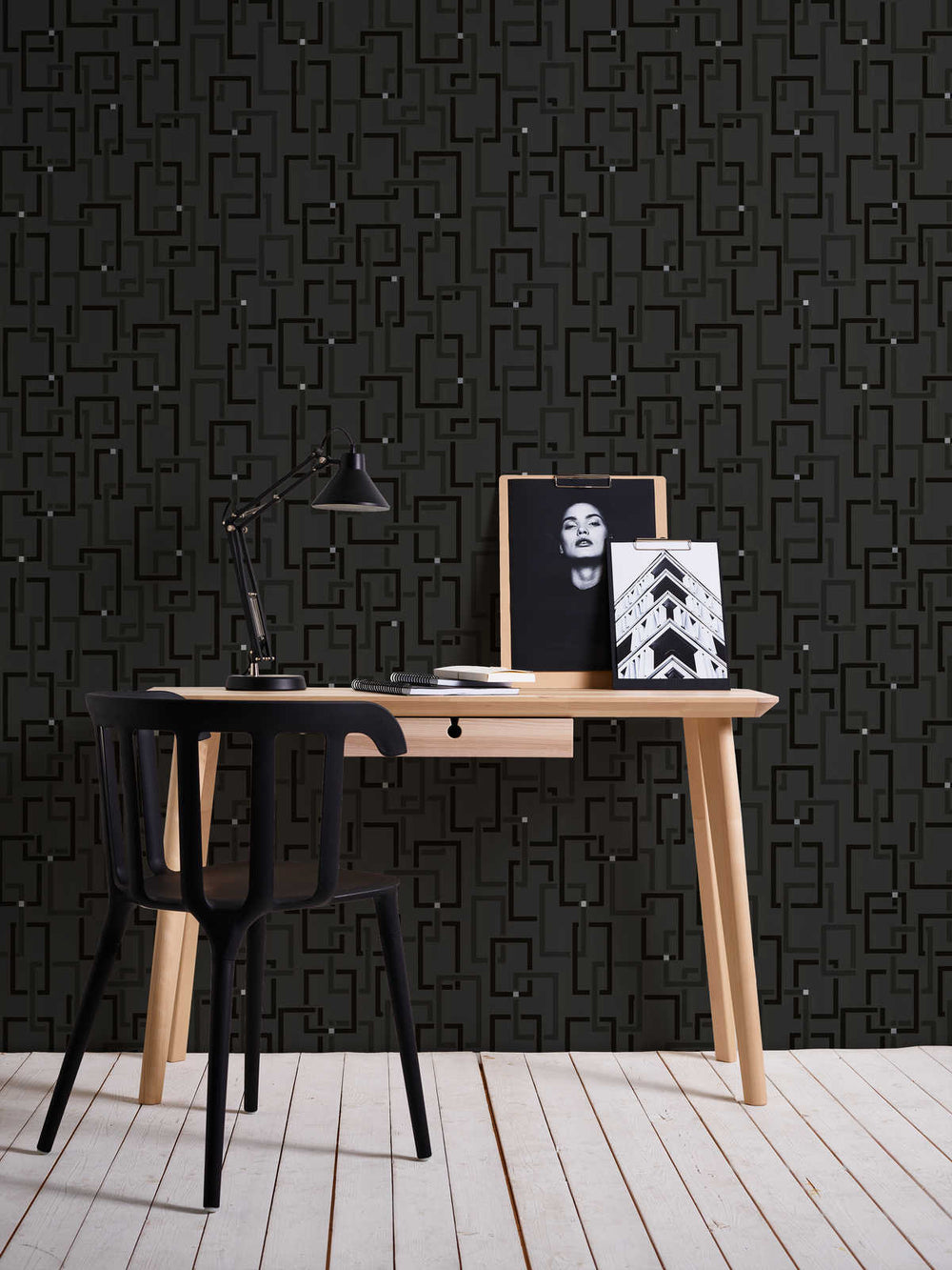 Wallpaper with graphic 3D pattern in dark gray, Erismann, 3751322