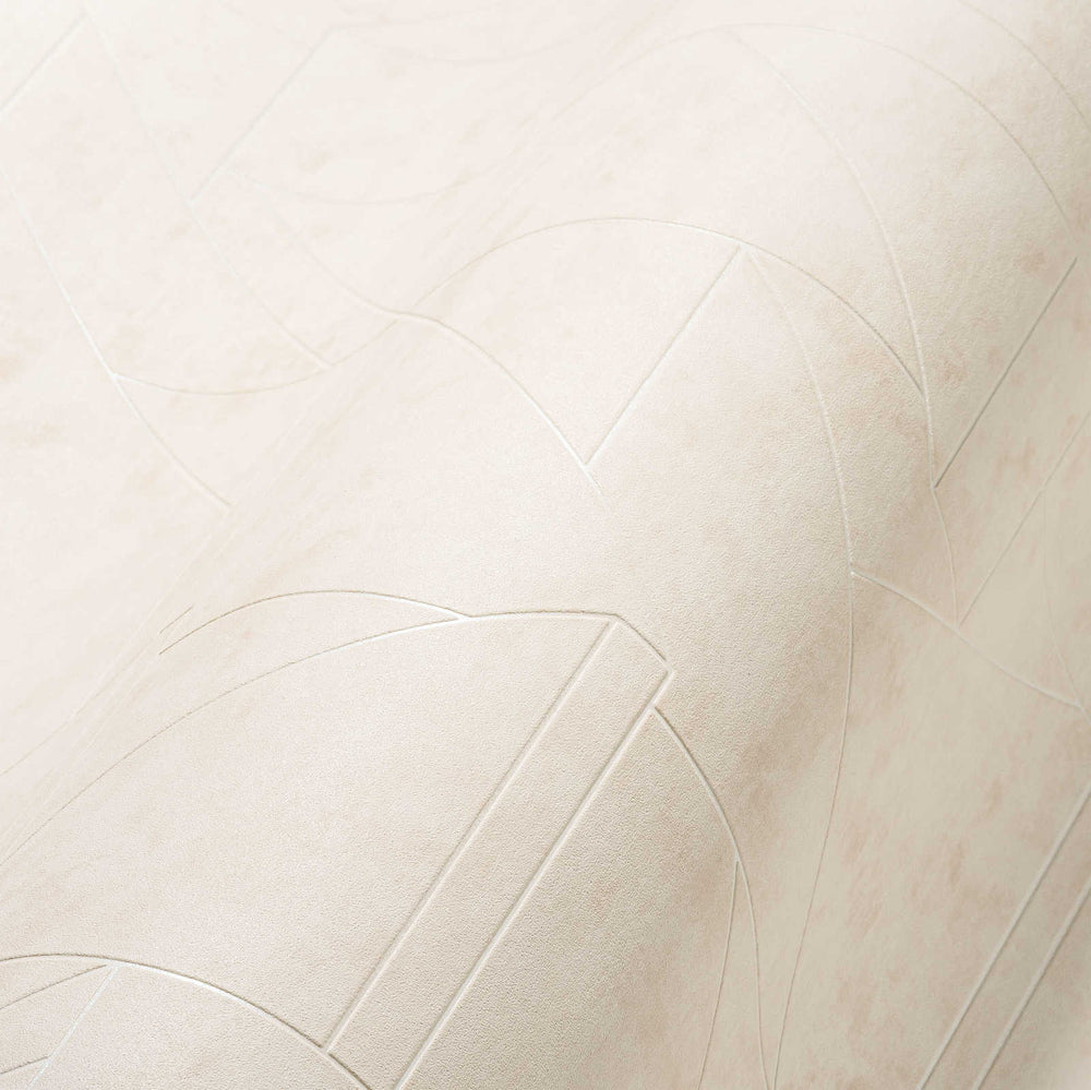 Graphic wallpaper with 3D pattern in cream, 1363540