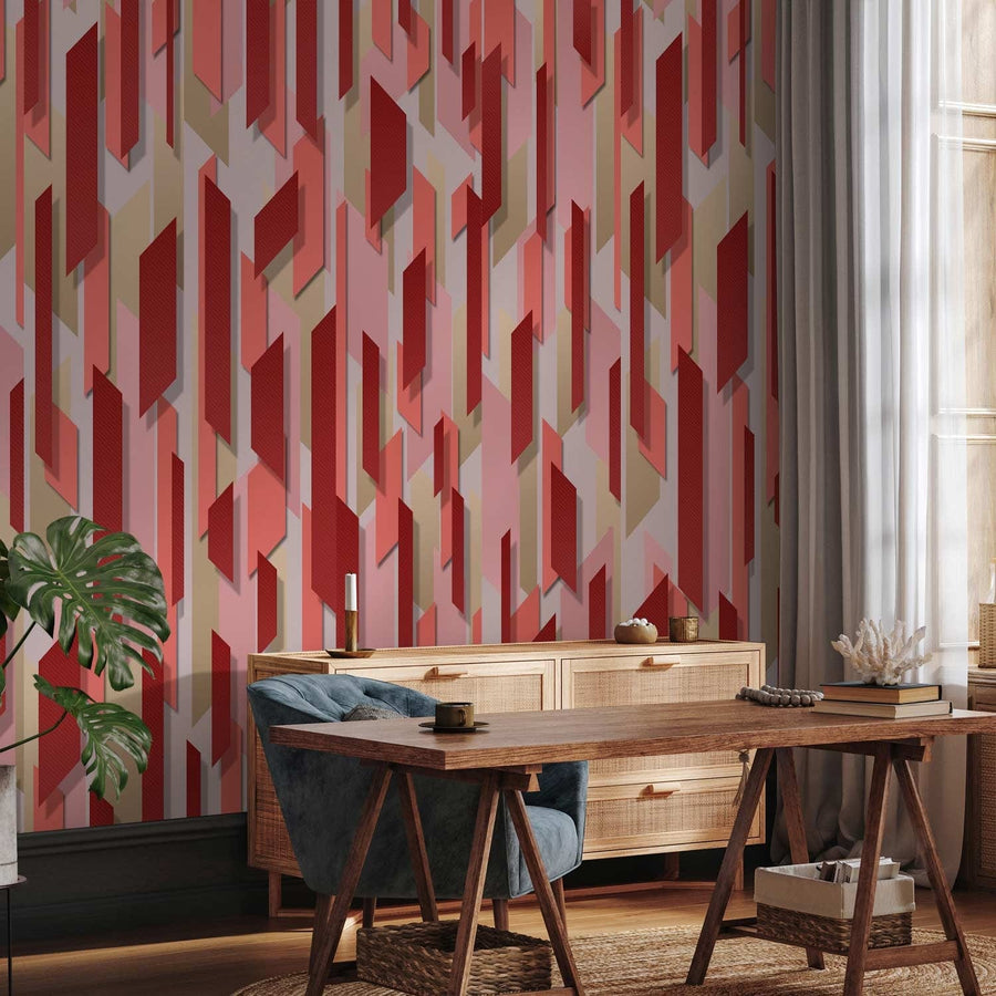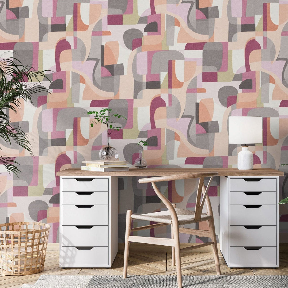 Tapetes ar ģeometrisku rakstu (pelēka, violeta, persiku krāsa) Tapetenshop.lv