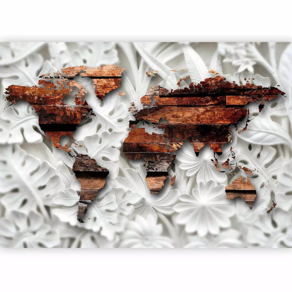 Fototapetes - Brūna koka pasaules karte ar alebastra ornamentiem G-ART