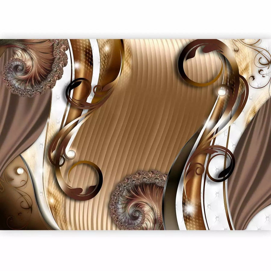 Fototapetes ar abstraktiem rakstiem un ziedu motīviem brūnā krāsā G-ART