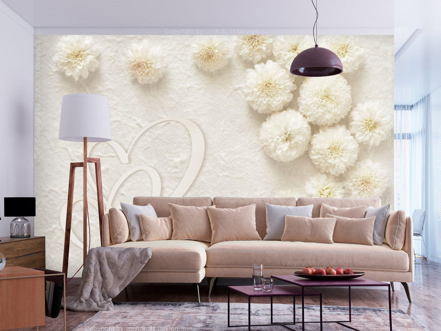 Fototapetes - Kompozīcija ar ziediem un divām sirsniņām - 138738 G-ART