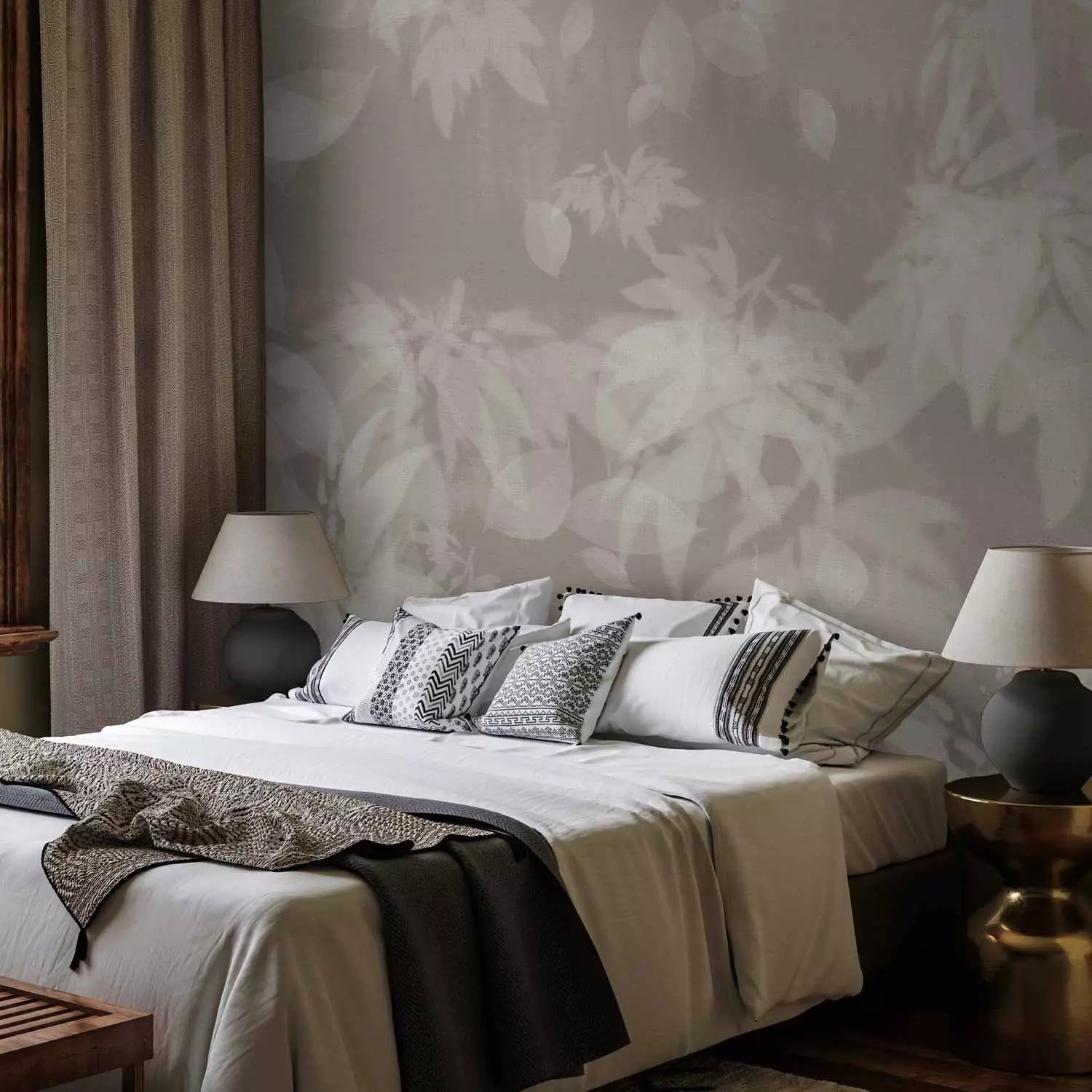 Wall murals - Composition with leaves in warm gray tones, 138744