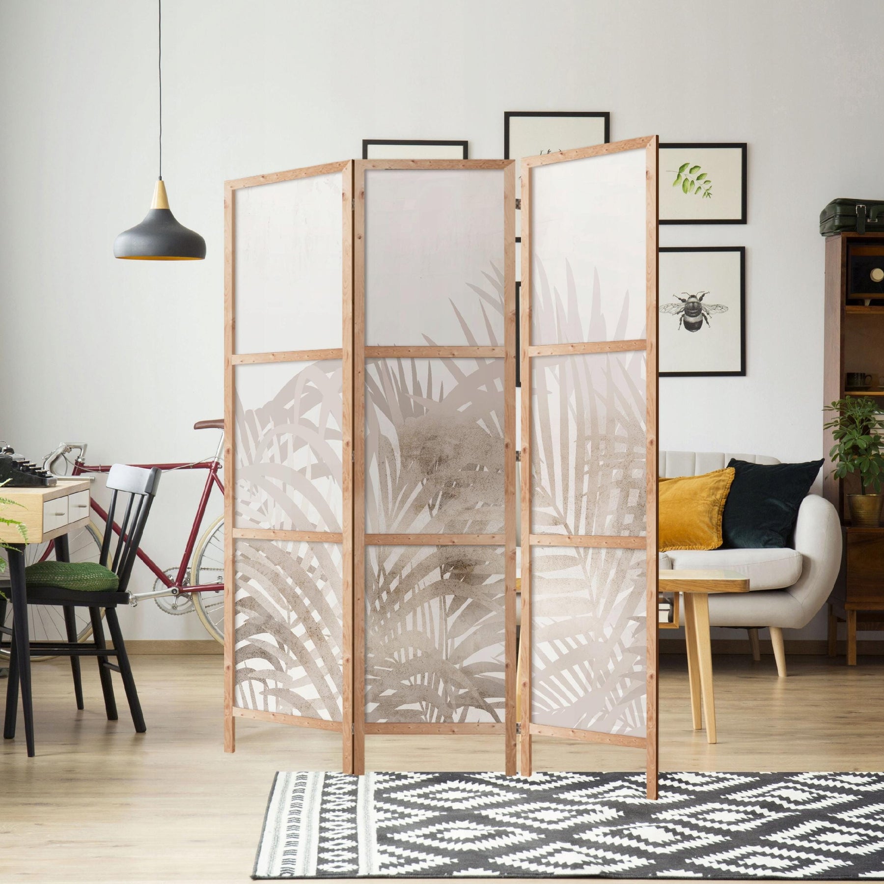 The lightweight yet stable wooden structure allows for quick and safe reorganisation of any room. A wide range of designs ensures that the screen will complement any interior style.