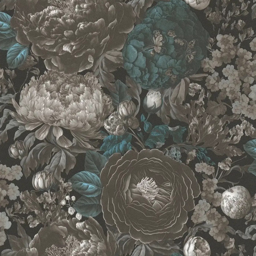 Flizelīna tapetes pelēkā/zilā krāsā - vintāžas ziedu krāšņums AS Creation