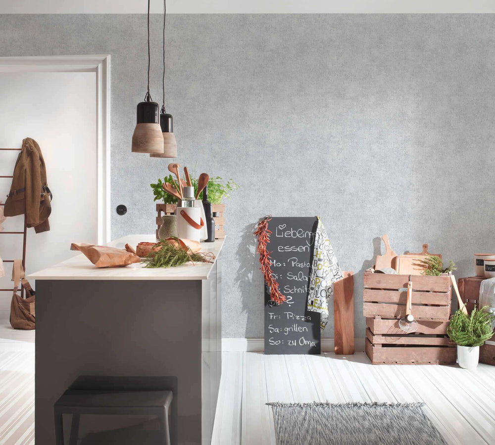 Pelēkas vienkrāsainas tapetes elegantai guļamistabai, 395662 AS Creation