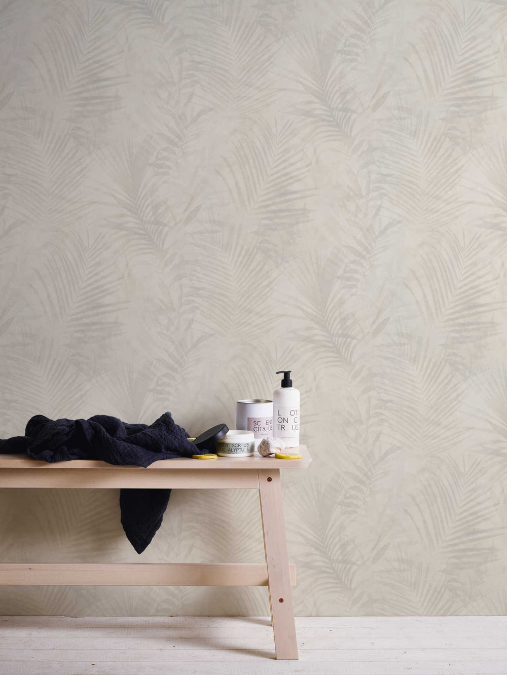 Wallpaper with palm leaves in cream color, matte, 1332541