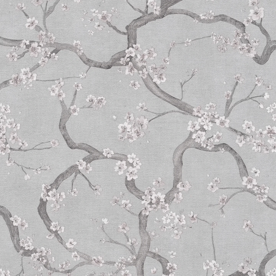 Tapetes ar rozā ziedu zariem uz pelēka fona - 1360264 AS Creation